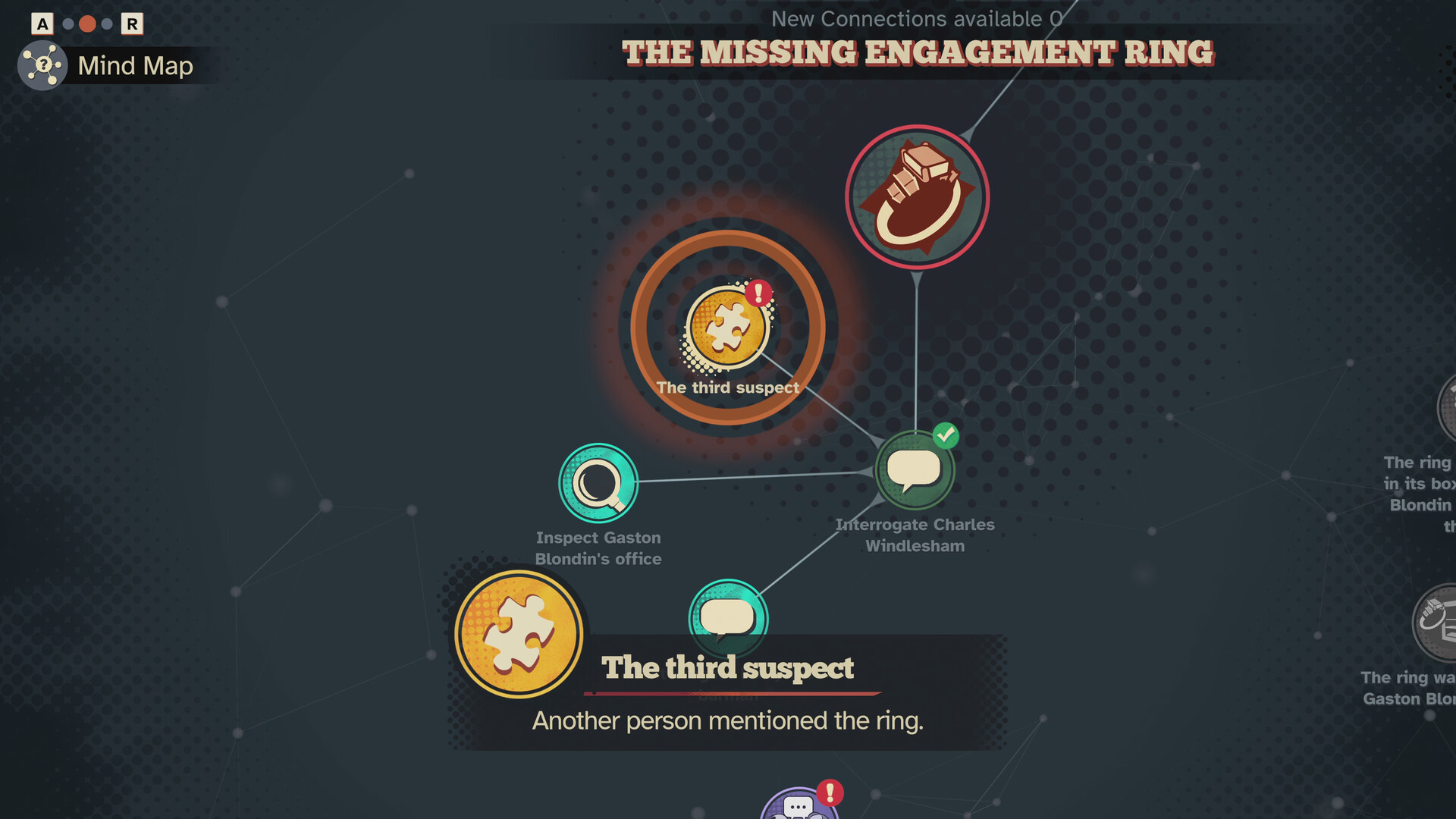 - Mapa mental mejorado: reúne y conecta los hechos en un mapa mental dinámico para hacer deducciones y avanzar en la historia.