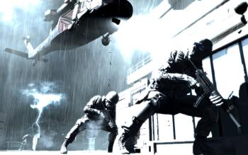 - Coordinated Assault and Support - Delivering the most visceral action thriller ever, the title covers modern battle from the soldier to the satellite, where the need for air support is critical to success. The adrenaline rush deployment enlists gamers to fast-rope from tactical helicopters, ride in an armada of attack choppers, utilize jets to remove enemy strongholds and even engage hostiles from thousands of feet above the ground inside a state of the art aerial gunship.